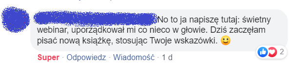 Uwielbiam styl Jadwigi. Trochę pół żartem, pół serio, ale zawsze mocno merytorycznie. To jest jeden z tych webinarów, po których masz przebłysk i nagle wszystko staje jasne… Poza tym, po przeczytaniu książki „Ograć nawyki” praktycznie mogę kupować w ciemno jej produkty, mając niemal 100% gwarancję, że znajdę tam rozwiązanie problemu. I dotąd nigdy się nie zawiodłam. Polecam!