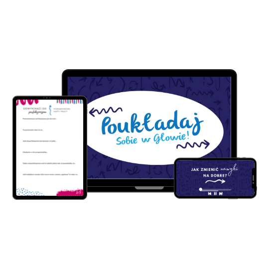 "Ten kurs jest dla każdego. Niezależnie czy chcesz założyć własny biznes, czy znaleźć satysfakcjonującą pracę, czy po prostu zmienić nawyk, chociażby rzucić codzienne jedzenie drożdżówek. Jeśli nieustannie wracasz do punktu wyjścia, zastanawiasz się „Czemu ciągle nie udaje mi się zacząć?”, „Niby wiem co, ale nie wiem jak?”, no to „Poukładaj sobie w głowie” pomoże Ci… poukładać sobie w głowie. Ta nazwa pasuje jak ulał, bo dzięki ćwiczeniom skomponowanym na zasadzie efektu kuli śnieżnej dowiesz się co (chcesz), dlaczego (chcesz) i jak (to zrobisz)." - Marta Pacholczyk